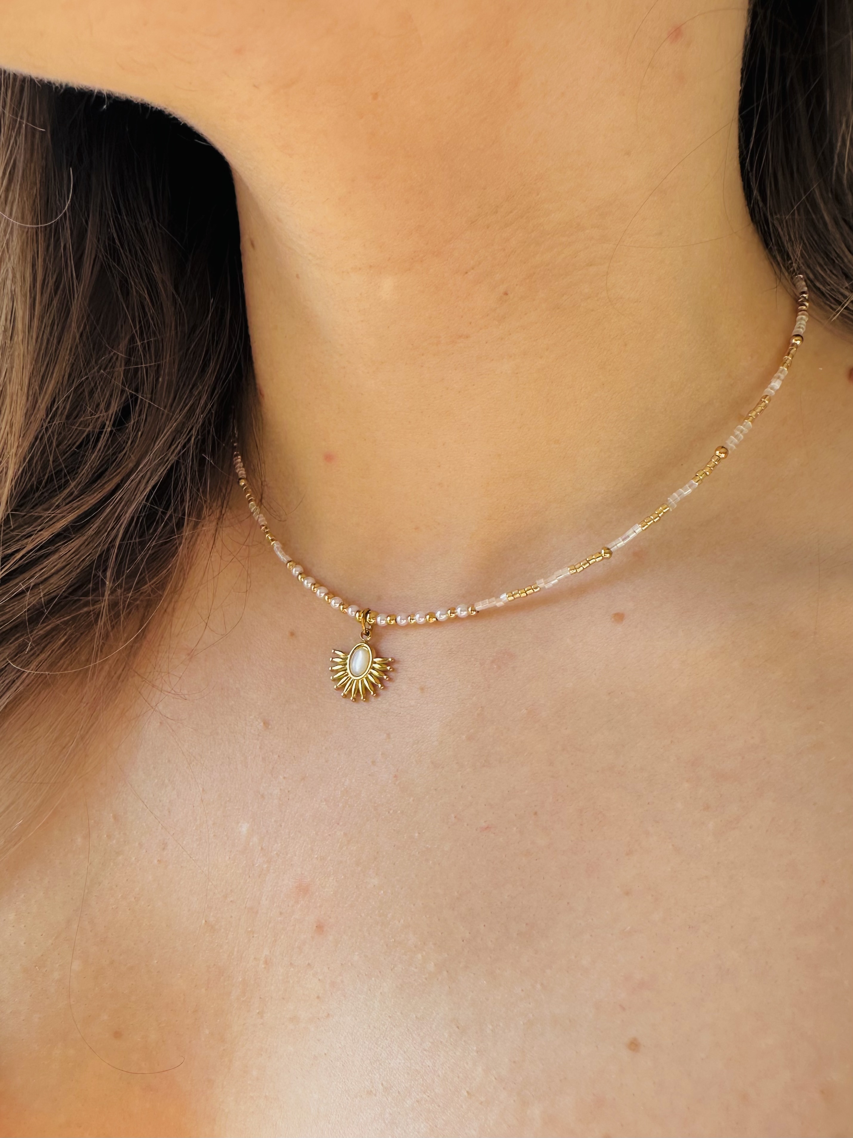 L'aventure Lunéli Designs a commencé en 2023, mais c'était lors d'un voyage au Mexique que la créatrice avait fait la découverte, non seulement des paysages somptueux de la mer des Caraïbes mais également des perles Miyuki, petites perles en verre colorées et tissées à la main sur des bijoux hauts en couleurs.